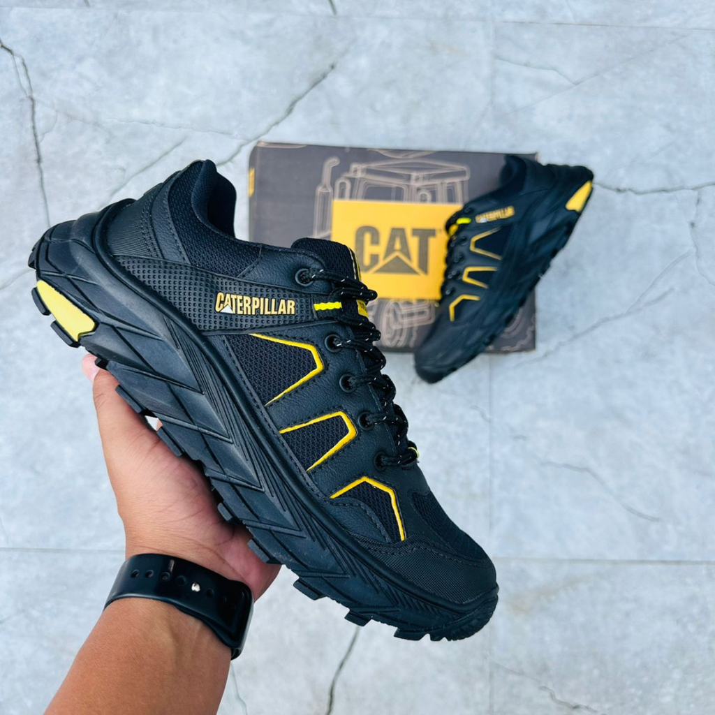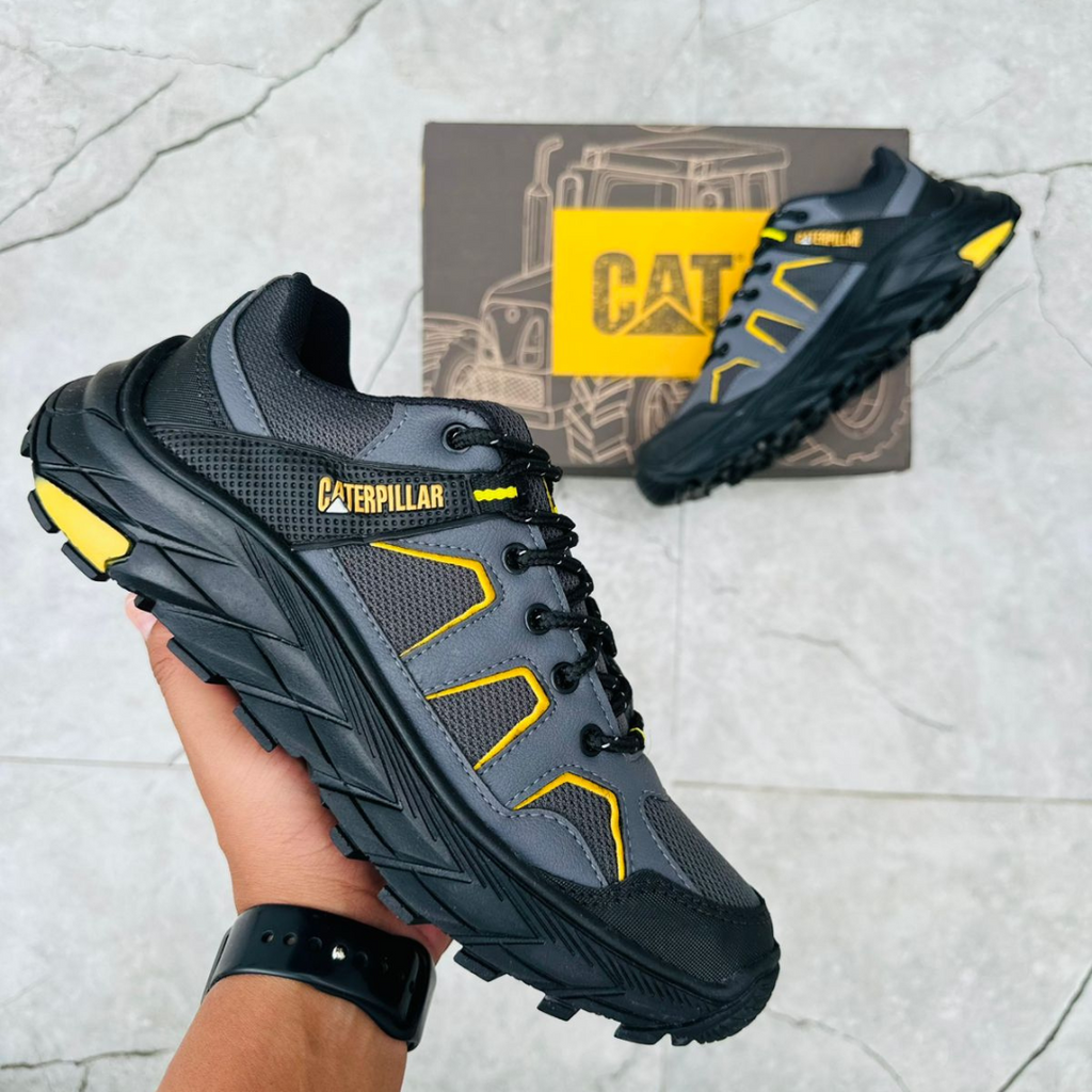 Com solado em borracha antiderrapante, oferece estabilidade e segurança em diferentes superfícies. O logotipo CAT em alta frequência aparece nas laterais e na parte traseira, reforçando a autenticidade do produto. O detalhe amarelado no solado dá um toque exclusivo e moderno.